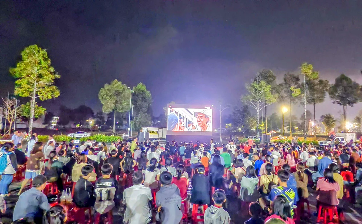 Đông đảo khán giả xem chiếu phim “Mưa đỏ” tại Quảng trường Bình Thủy.